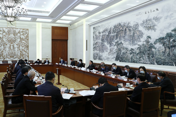3月31日,全国人大常委会中医药法执法检查组第一次全体会议在北京召开,全国人大常委会副委员长艾力更·依明巴海、白玛赤林、蔡达峰出席会议。 张钰钗 摄