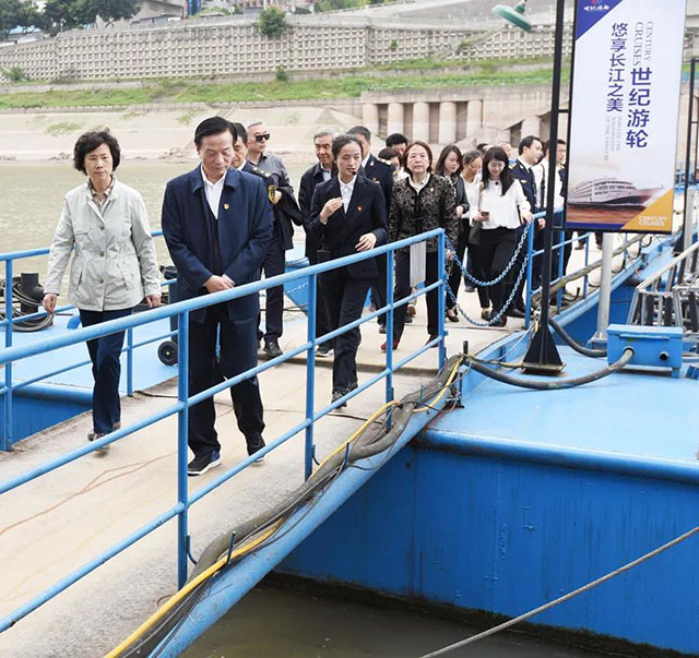 4月22日,调研组一行在朝天门码头调研船舶污染防治情况。记者 杨波 摄