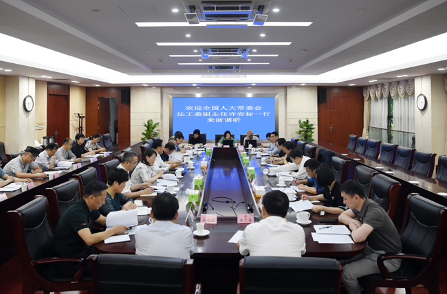 浙江省人大法制委员会主任委员丁祖年,浙江省人大常委会副秘书长、法工委主任任亦秋,法工委副主任田梦海陪同调研或者参加座谈会。