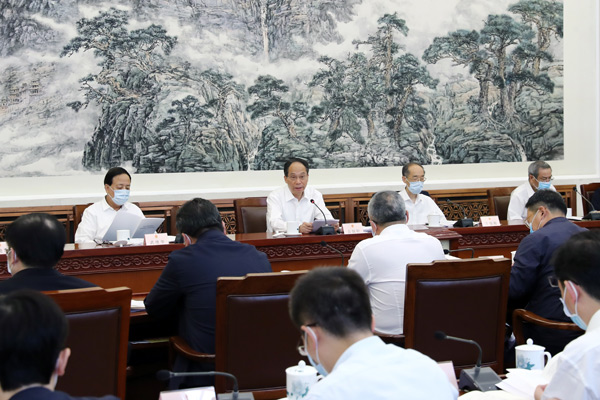 全国人大常委会畜牧法执法检查组20日在京召开第一次全体会议。全国人大常委会副委员长吉炳轩、万鄂湘、武维华出席。许麟 摄