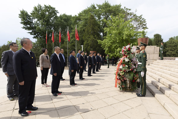 5月19日,中共中央政治局委员、全国人大常委会副委员长、中国法学会会长王晨一行瞻仰察哈尔烈士陵园并敬献花篮。戎珊 摄