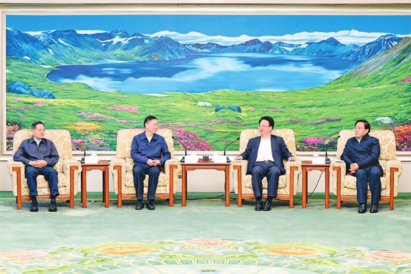 5月31日,吉林省委书记、省人大常委会主任景俊海,省委副书记、省长韩俊一起在长春会见全国人大常委会副委员长郝明金一行。吉林日报记者 邹乃硕 摄