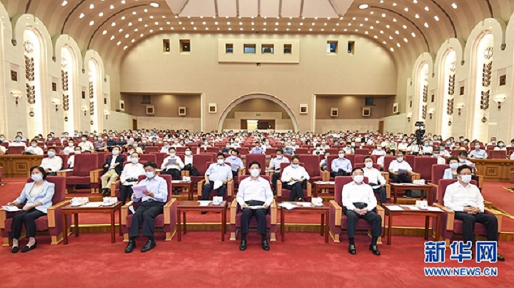 6月21日,全国人大常委会党组成员与人大机关党员干部在北京同上党史课,听取“中国共产党为什么能”党史学习教育专题辅导报告。中共中央政治局常委、全国人大常委会委员长、党组书记栗战书出席。新华社记者 殷博古 摄
