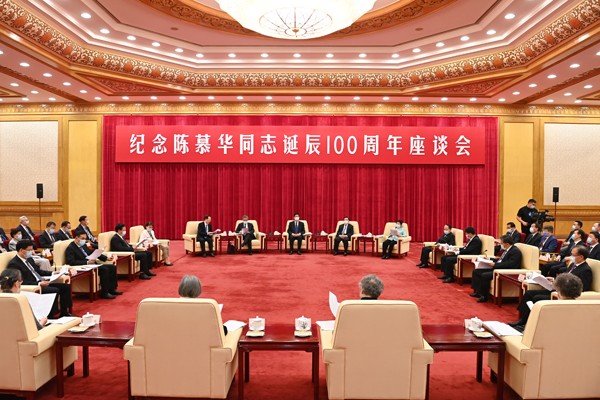 纪念陈慕华同志诞辰100周年座谈会21日在京举行。中共中央政治局常委、全国人大常委会委员长栗战书出席座谈会,并在会前会见了陈慕华同志亲属。