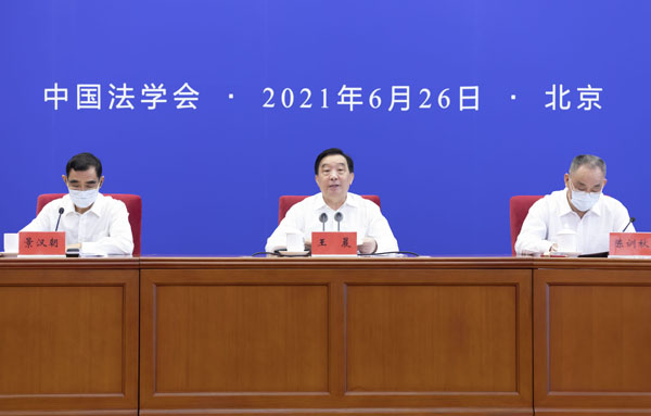6月26日,习近平法治思想研究中心在京成立。中共中央政治局委员、全国人大常委会副委员长、中国法学会会长王晨出席成立大会并讲话。戎珊 摄