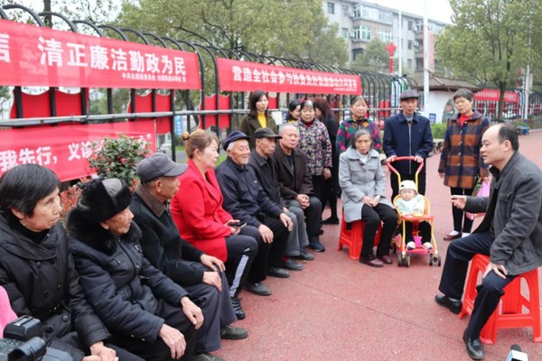温菲在社区宣讲全国人代会精神。供图/温菲