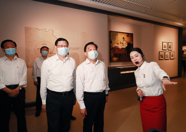 7月6日,中共中央政治局委员、全国人大常委会副委员长王晨一行参观中共五大会址纪念馆。摄影/湖北日报 魏莱