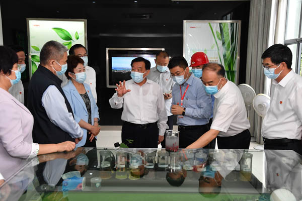 7月7日,中共中央政治局委员、全国人大常委会副委员长王晨率全国人大常委会执法检查组在湖北国新天汇能源公司进行执法检查。摄影/湖北日报 魏莱