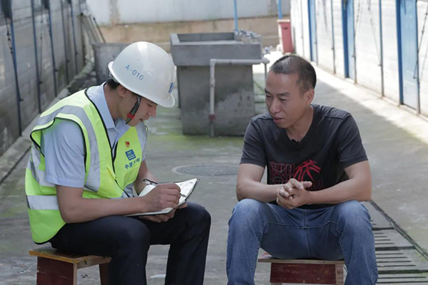 2020年5月,邹彬与农民工肖师傅交流。(代表供图)