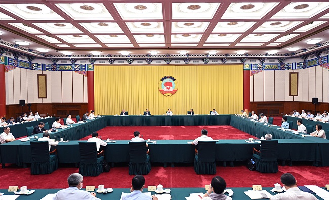 7月27日上午,全国政协党组理论学习中心组暨主席会议集体学习举行,深入学习贯彻习近平总书记在庆祝中国共产党成立100周年大会上的重要讲话精神。中共中央政治局常委、全国政协主席、党组书记汪洋主持会议并讲话。记者 齐波 摄