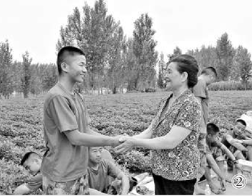 图①:郭建华代表(右一)看望解放军和武警官兵