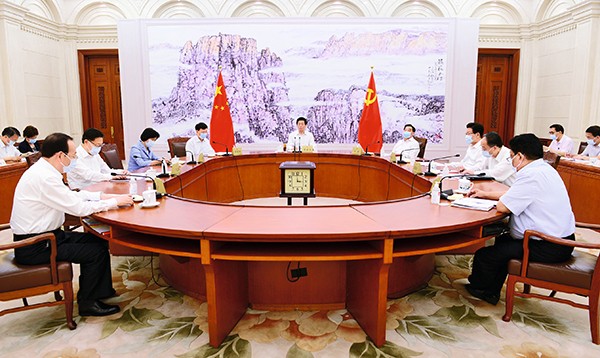 7月1日下午,中共全国人大常委会党组举行会议,专题学习贯彻习近平总书记“七一”重要讲话精神。中共中央政治局常委,全国人大常委会委员长、党组书记栗战书主持会议并讲话。摄影/马增科