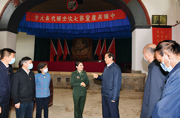 4月10日上午,栗战书委员长和检查组成员来到陕西延安,瞻仰了党的七大会址、中共中央西北局旧址、杨家岭和枣园等革命纪念地。摄影/马增科