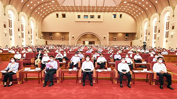 6月21日,全国人大常委会党组成员与人大机关党员干部在北京同上党史课,听取“中国共产党为什么能”党史学习教育专题辅导报告。中共中央政治局常委,全国人大常委会委员长、党组书记栗战书出席。摄影/新华社记者 殷博古