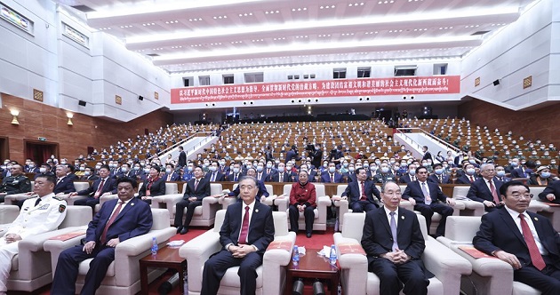 8月19日,庆祝西藏和平解放70周年文艺演出《西藏儿女心向党》在西藏人民会堂精彩上演。中共中央政治局常委、全国政协主席、中央代表团团长汪洋,与西藏自治区各族各界干部群众600余人一起观看演出。这是演出开始前,汪洋会见西藏自治区领导班子成员、离退休老同志,各族各界、寺管干部、政法干警和驻藏解放军、武警部队官兵代表,并同他们合影留念。新华社记者 丁林 摄