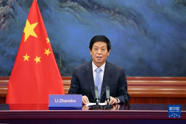 全国人大常委会委员长栗战书31日在北京人民大会堂以视频方式同斯里兰卡议长阿贝瓦德纳举行会谈。