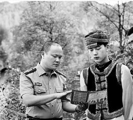 在广西柳州市融安县板榄镇东岭村,征兵工作人员给瑶族群众讲解征兵政策。覃庆和 摄/光明图片