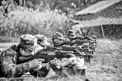湖南省怀化市靖州县人武部组织民兵实弹射击演练。胡斐 摄/光明图片