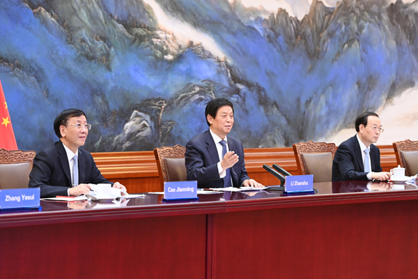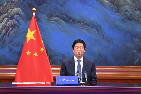 全国人大常委会委员长栗战书22日在北京人民大会堂以视频方式同卢森堡国民议会议长埃特让举行会谈。