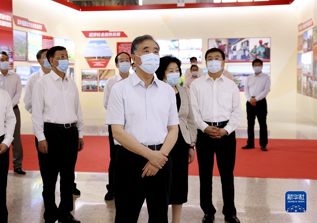9月28日,中共中央政治局常委、全国政协主席汪洋到北京民族文化宫参观“党的光辉照边疆 各族儿女心向党——全国兴边富民成就展”。新华社记者 刘卫兵 摄