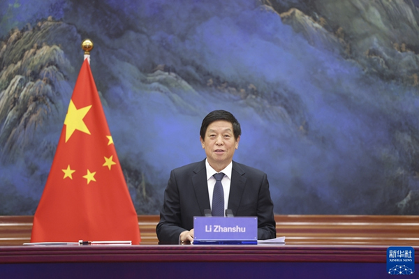 全国人大常委会委员长栗战书24日在北京人民大会堂以视频方式同塞浦路斯议长迪米特里乌举行会谈。