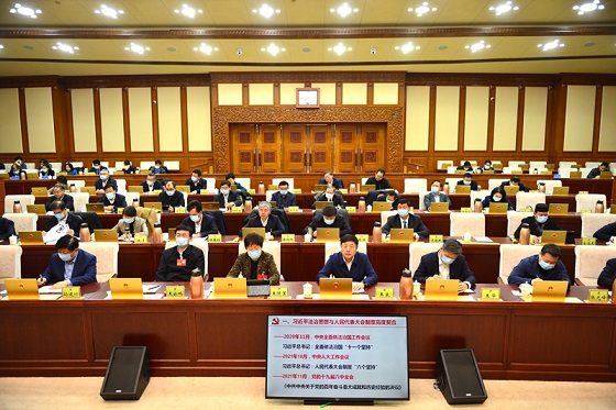 王良在主持时指出,习近平法治思想是顺应实现中华民族伟大复兴时代要求应运而生的重大理论创新成果,是马克思主义法治理论中国化最新成果,是习近平新时代中国特色社会主义思想的重要组成部分,是全面依法治国的根本遵循和行动指南。要在深入学习贯彻习近平法治思想上下功夫求实效,与深入学习贯彻党的十九届六中全会精神结合起来,与深入学习贯彻习近平总书记关于坚持和完善人民代表大会制度的重要思想和中央人大工作会议精神结合起来,与深入学习贯彻习近平总书记对山东重要指示要求结合起来,与全面贯彻落实省委十一届十四次全体会议精神结合起来,坚持党对人大工作的全面领导,不断提高政治判断力、政治领悟力、政治执行力。要切实把学习成效转化为做好人大工作的实际行动,在知行合一中担当作为,以强烈的责任感使命感扎实做好立法、监督、普法宣传等各项工作,努力为法治山东建设作出人大贡献。