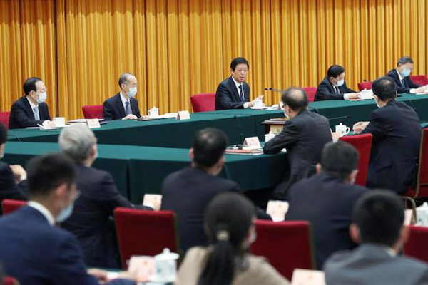 中共中央政治局委员、全国人大常委会副委员长王晨主持座谈会。全国人大常委会副委员长万鄂湘、郝明金出席。