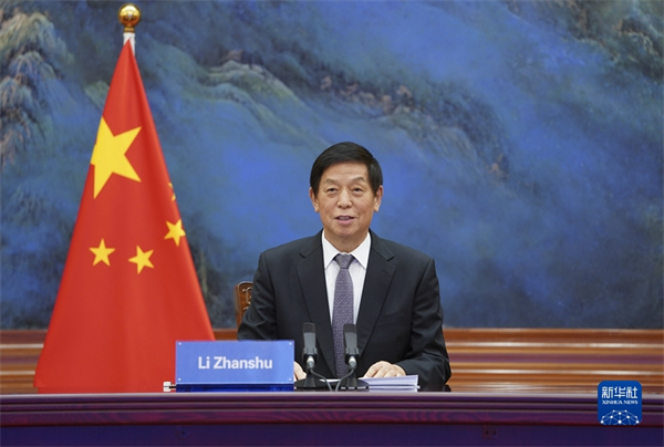 全国人大常委会委员长栗战书7日在北京人民大会堂以视频方式同奥地利国民议会议长索博特卡举行会谈。