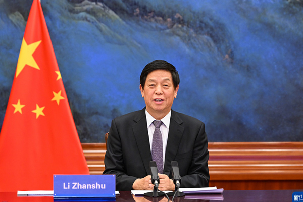 栗战书介绍了中国的人民代表大会制度相关情况。他说,民主是全人类的共同价值,是要用来解决人民需要解决的问题的,实现民主有多种方式,不可能是千篇一律的。中国将坚持和完善人民代表大会制度,不断发展全过程人民民主,在治国理政的各项政策和工作实践中,把人民当家作主具体、现实地体现出来。