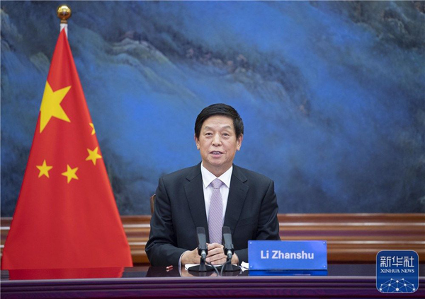 全国人大常委会委员长栗战书14日在北京人民大会堂以视频方式同摩尔多瓦议长格罗苏举行会谈。