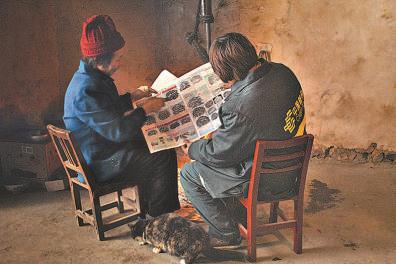 遇到不识字的村民,赵明翠(右)要帮助读信念报,有时还帮着写回信。
