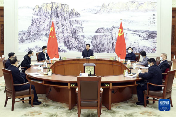 1月21日,中共全国人大常委会党组举行会议,学习习近平总书记在十九届中央纪委六次全会上的重要讲话和全会精神,结合人大工作实际,研究部署贯彻落实工作。中共中央政治局常委、全国人大常委会委员长、党组书记栗战书主持会议并讲话。新华社记者 庞兴雷 摄