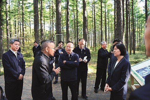 2021年9月22日至24日,全国人大常委会副委员长沈跃跃(前右一)率调研组到河北省就学习贯彻落实习近平总书记在塞罕坝考察时重要讲话精神、推动秋冬季大气污染防治及绿色冬奥环境保障工作开展专题调研。摄影/承德日报 陈琦嘉