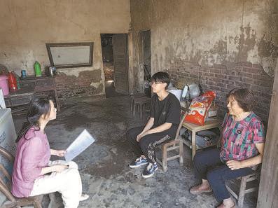 李霞(左一)到乡村入户讲解血吸虫病防治知识
