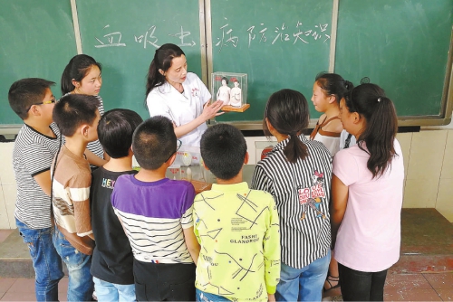 李霞为学生们讲解血吸虫病防治知识