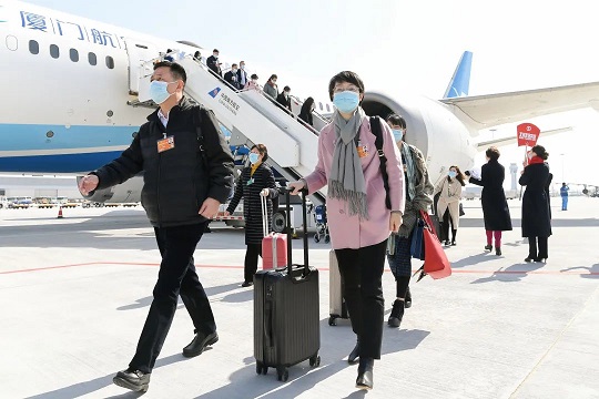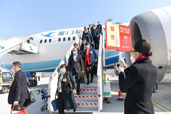 3月3日,承载人民期待,肩负神圣使命,在闽全国人大代表在春光里启程,抵达北京,出席即将召开的十三届全国人大五次会议。