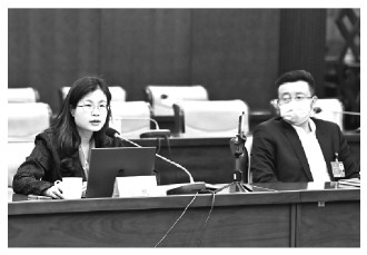 上图为重庆市渝北区委常委、副区长杨帆代表围绕打击侵犯个人信息犯罪提出意见建议。 CFP供图