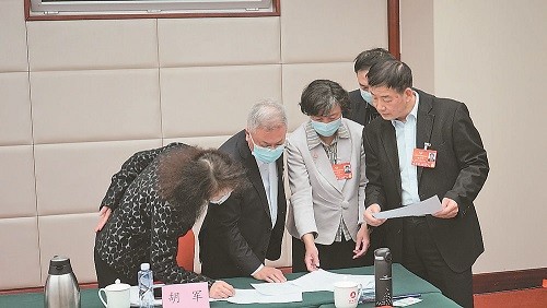 3月9日,台盟界委员在小组讨论会场内外,同样认真,勤勉履职。