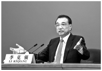 ▲图为李克强总理正在回答记者提问。 本报记者 王建军 摄