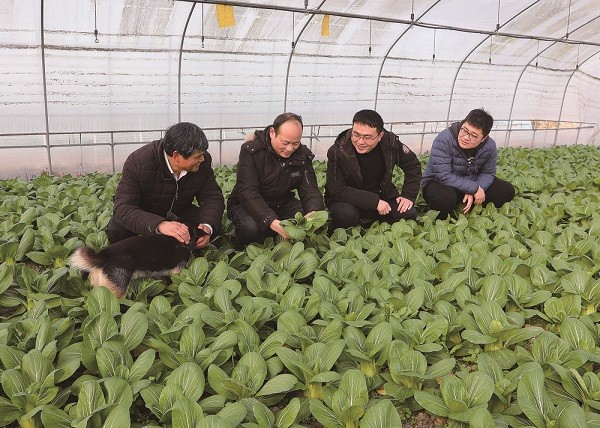 连日来,安徽省庐江县政协组织农技人员下基层指导蔬菜生产,帮助种植大户做好防寒防灾工作,保证百姓的“菜篮子”充足供应。工作组先后深入专业合作社、农产品龙头企业、蔬菜种植基地、育苗基地等处,实地察看了蔬菜长势,并通过现场交流、听取汇报等方式,详细了解了全县蔬菜产业发展情况和发展过程中遇到的问题。图为工作组在庐江县白山镇蔬菜基地察看蔬菜生长情况。钱良好 摄