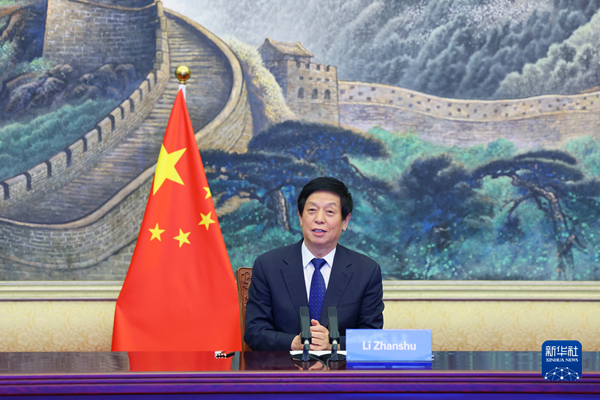 全国人大常委会委员长栗战书25日在北京人民大会堂以视频方式同吉尔吉斯斯坦议长马梅托夫举行会谈。