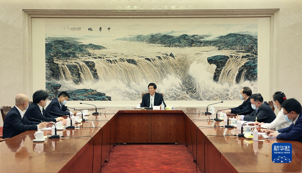 4月18日下午,中共中央政治局常委、全国人大常委会委员长栗战书在北京同列席十三届全国人大常委会第三十四次会议的全国人大代表座谈交流。新华社记者 姚大伟 摄