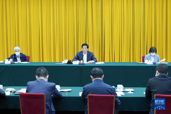 4月22日,青藏高原生态保护法立法座谈会在北京召开。中共中央政治局常委、全国人大常委会委员长栗战书出席会议并讲话。新华社记者 高洁 摄