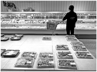 5月9日,在北京市朝阳区太阳宫的一家超市,市民在挑选预制菜。