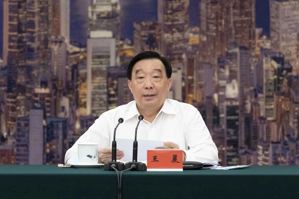 6月14日,中共中央政治局委员、全国人大常委会副委员长、中国法学会会长王晨在京出席深入学习研究阐释习近平法治思想研讨会并讲话。摄影/蒋启明