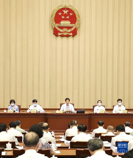 6月21日,十三届全国人大常委会第三十五次会议在北京人民大会堂举行第一次全体会议。栗战书委员长主持。新华社记者 庞兴雷 摄