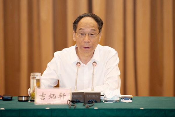 全国人大常委会副委员长吉炳轩在座谈会上讲话。