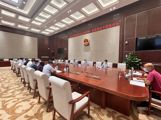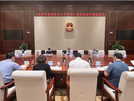 7月27日下午,接诉即办工作条例执法检查组召开相关单位专题座谈会,北京市人大社会建设委员会主任委员丛骆骆主持会议,部分执法检查组成员参加座谈会。