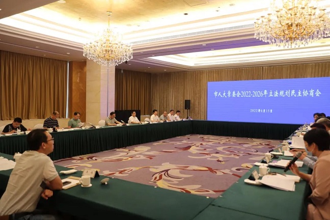 2022年6月15日,宿迁市人大常委会召开2022—2026年立法规划民主协商会。(宿迁市人大常委会供图)