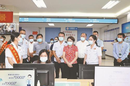 近日,广西壮族自治区钦州市政协组织委员走进自贸试验区钦州港片区税务局开展“政协委员体验组合式税费支持政策落实情况”活动,旨在发挥好政协委员税务服务工作室服务企业的“连心桥”作用,助力地方经济社会高质量发展。陈国明 王鸿伟 摄